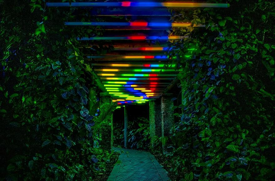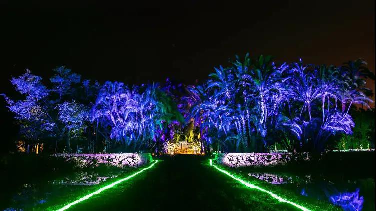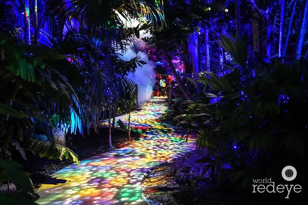 Night Garden位于邁阿密風(fēng)景如畫的仙童熱帶植物園內(nèi),是一個(gè)長達(dá)一英里的夜間景點(diǎn),設(shè)有1200多個(gè)照明燈具、21個(gè)不同的多媒體燈光裝置。從霧幕投影到雨林中的水中投影以及懸掛著數(shù)百盞LED燈管長約400英尺的走廊將其變成了一個(gè)令人難以置信光影游樂場。