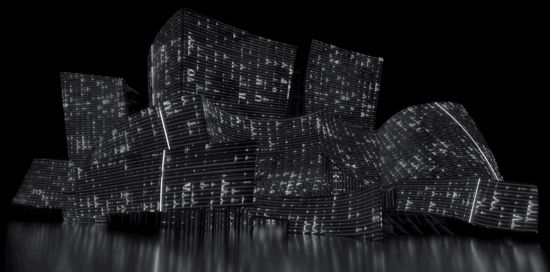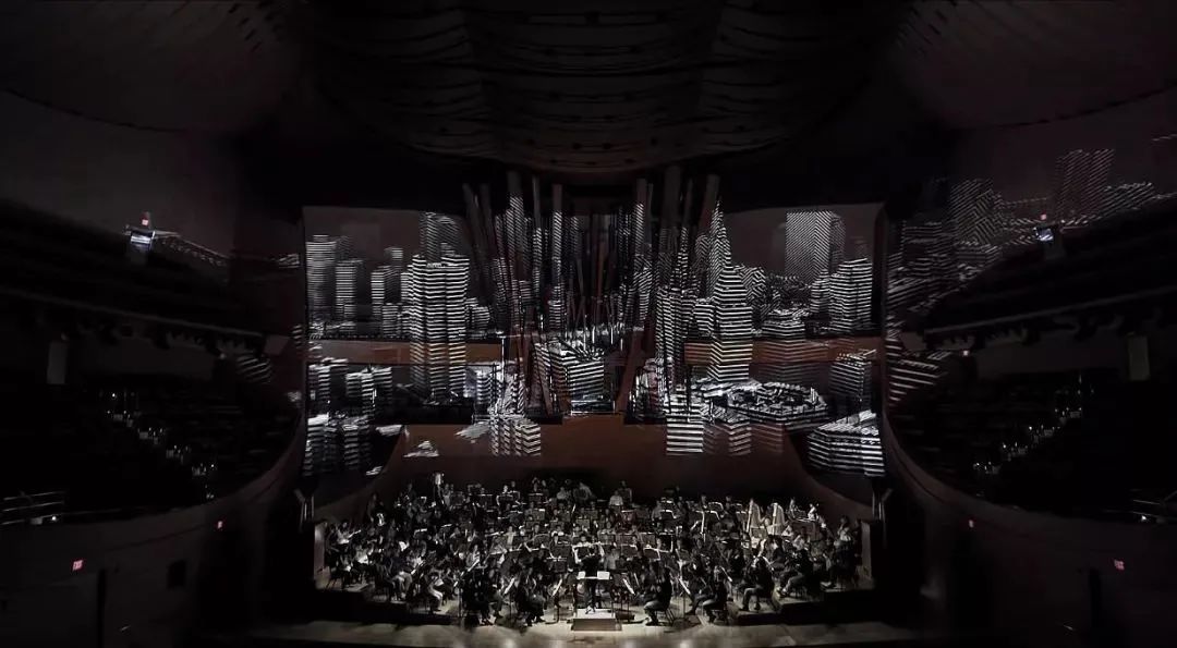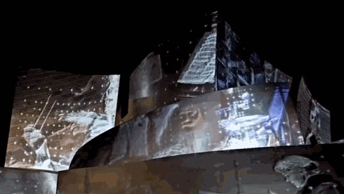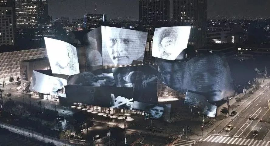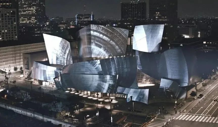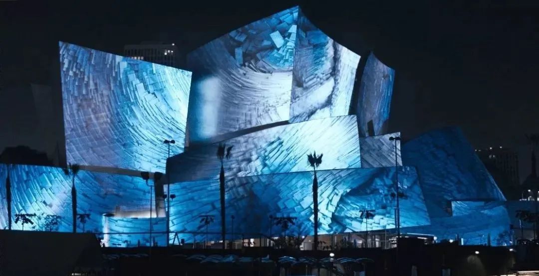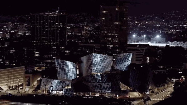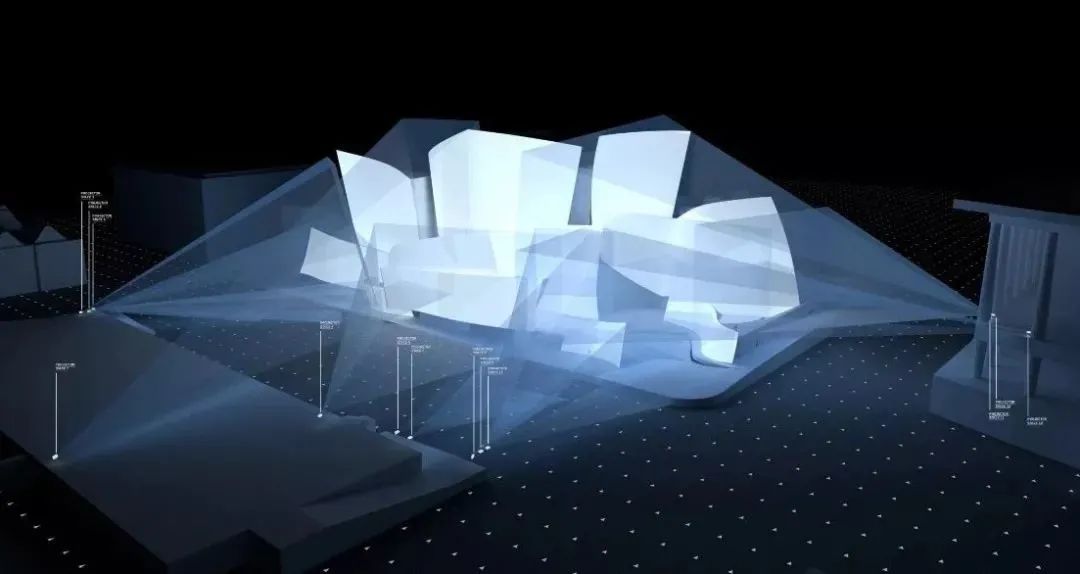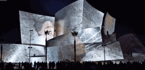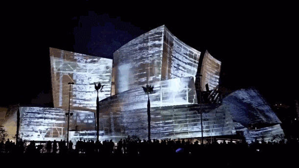 投影在當(dāng)代著名建筑師Frank Gehry設(shè)計(jì)的音樂(lè)廳上