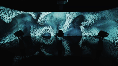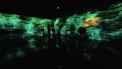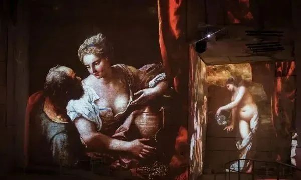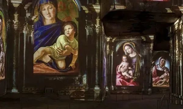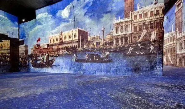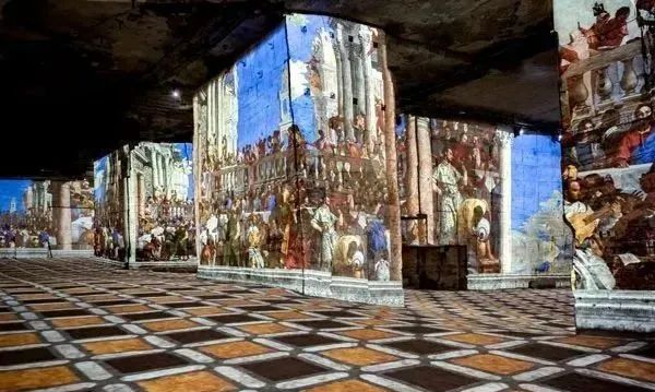 南法普羅旺斯Carrières de Lumières (光影采石場),這個在60年代被廢棄的采石場遺址,配上70臺投影機將世界名畫鋪滿14米的巨大石墻、石柱和地板,搖身一變成為6000平方米的巨大光影藝術基地。它用光影重塑藝術,致敬藝術家。觀眾仿佛被一幅幅名家畫作包裹著,置身于此不再是賞畫,而是入畫,如王維詩里寫的:“舟行碧波上,人在畫中游”。