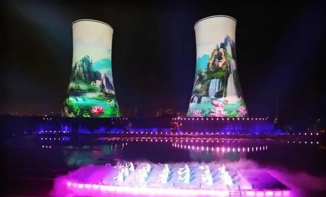 焦作·國際首創(chuàng)高塔實景演出文旅項目位于解放區(qū)焦西街道,占地約5萬平方米,利用焦作發(fā)電廠兩座高100米、寬50米的涼水塔為演繹背景,運用高科技光影技術,結合水面特效、舞臺表演等多種表現(xiàn)形式,將焦作人文歷史和豐富的文化元素進行時尚與創(chuàng)意的打造,凸顯極度震撼的視覺效果。