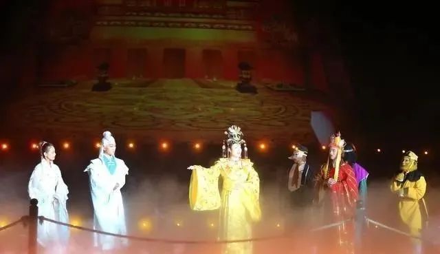 演出現(xiàn)場,兩座高大的涼水塔上,時而金龍游走,時而出現(xiàn)璀璨星空……《云宮迅音》《女兒情》等熟悉的旋律引發(fā)觀眾強烈共鳴,現(xiàn)場3D效果更是讓觀眾身臨其境,仿佛穿越時空。
