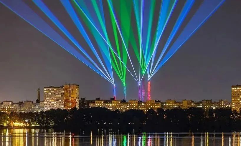 這件后工業(yè)藝術裝置被稱為《Dnipro Light Flowers》,具有像素燈、激光和無線同步功能,是第聶伯羅市從工業(yè)中心向高科技城市轉型的新戰(zhàn)略的象征,為城市的發(fā)展注入了新的活力。
