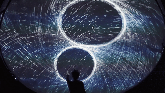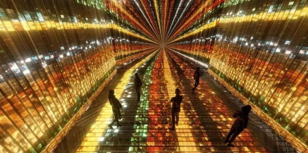 現(xiàn)階段數(shù)字藝術(shù)指的是結(jié)合前沿的信息技術(shù)(5G、VR、AR、人工智能、云計(jì)算和大數(shù)據(jù)等新的信息生態(tài)鏈)用于藝術(shù)活動(dòng)的創(chuàng)作中,利用多通道投影融合技術(shù)將投影畫(huà)面完整地投射到四周墻面、地面上,形成一種動(dòng)態(tài)的封閉式空間,給觀眾一種前所未有的、身臨其境的震撼享受。