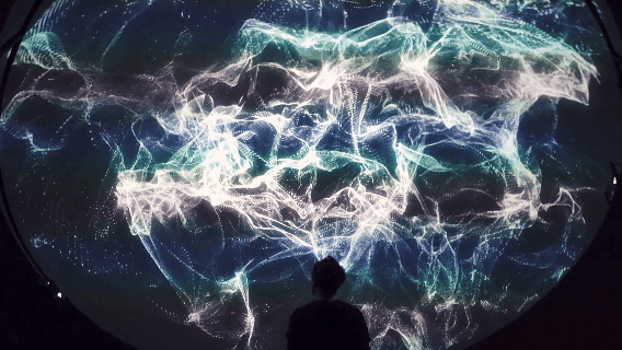 開(kāi)幕展覽是有著人工智能先驅(qū)之稱的土耳其藝術(shù)家 Refik Anadol 的《Machine Memoirs: Space》,以及倫敦沉浸式藝術(shù)先驅(qū) Marshmallow Laser Feast 的五屏實(shí)時(shí)互動(dòng)裝置《The Tides Within Us》。