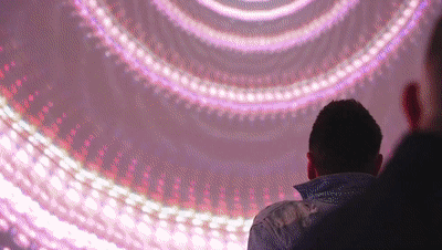在有限的空間里,Refik Anadol 將一串串冰冷的數(shù)據(jù)變得生動(dòng)有趣,漫天的絢爛射線與粒子光影環(huán)繞四周,為現(xiàn)場(chǎng)觀眾打開(kāi)了一個(gè)浩渺浪漫的宇宙世界。
