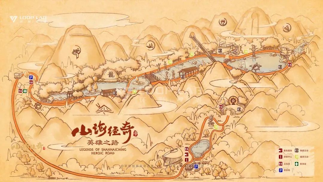 項(xiàng)目游覽路線約2.5公里,共分混沌世界、怒觸不周山、英雄現(xiàn)世、化熊抗水、緣起青丘、山川命名等6大篇章。同時(shí),十余個(gè)星羅散布在山谷里的小劇情及互動(dòng)章節(jié)將6大篇章串聯(lián)起來。