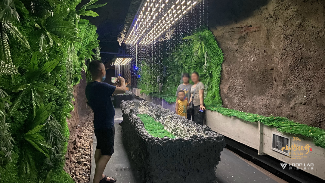 穿過迷霧,在燈光的指引下,游客漫步于山海圖繪的世界中,可以尋找到許多山海經(jīng)中所記載的神話故事。