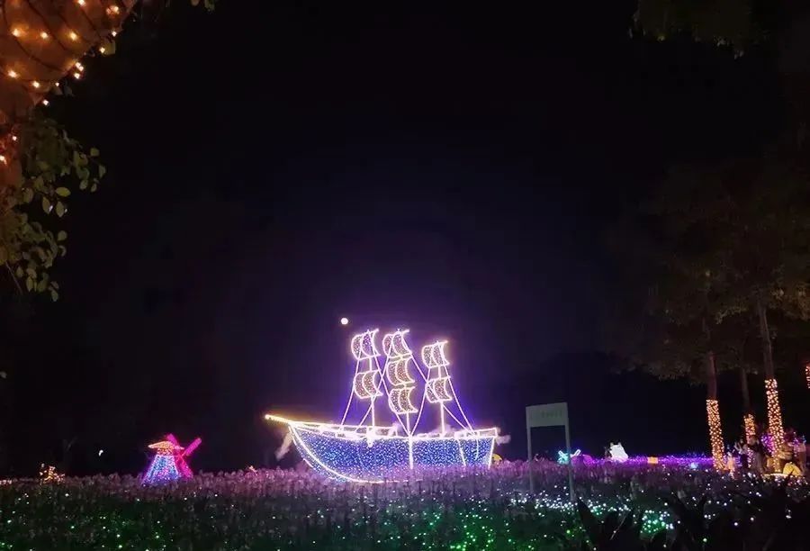 滑道旁邊有一大片燈光花海,下面的“熒光秘境”是非常值得推薦的一個地方。閃爍搖曳的熒光球燈、舒緩的音樂、薄薄的雨霧,猶如夢境一般非常的仙。