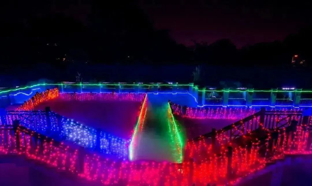 奇幻迷霧森林也是不能錯過的打卡點(diǎn)。七彩燈串將靜謐森林裝扮的絢麗非常,可愛的小動物在林中奔騰跳躍。林深見鹿,通體明亮的靈氣麋鹿仿佛抬頭吟唱“呦呦鹿鳴”、虎大王乘風(fēng)呼嘯而來展示“虎虎生威”,七星瓢蟲、蝴蝶燈串浪漫翩躚,隨時準(zhǔn)備飛進(jìn)你的心里。