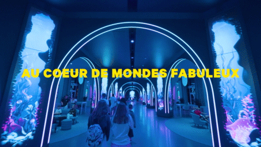 多媒體內(nèi)容將大禮堂變成了四個獨特的世界供客人探索:生機(jī)勃勃的花園、夜幕降臨的森林、雄偉的海底世界和高聳入云的仙境。