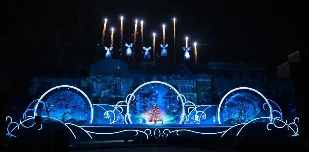 作為日本環(huán)球影城《水晶圣誕》節(jié)目的一部分《水晶承諾》圣誕秀被投影到磚砌建筑和具有三個(gè) LED 表面的實(shí)體布景上,雪花飄蕩在整個(gè)舞臺(tái),帶來(lái)迷人的栩栩如生的冰雪世界。
