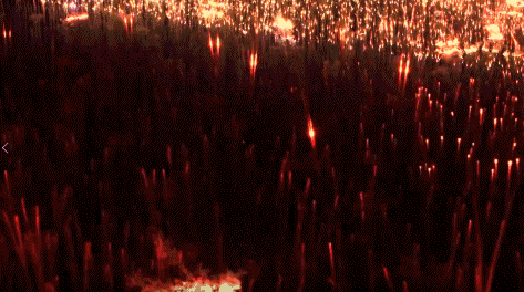 裝置中144平方米的懸掛式人工草坪就像極光一樣奪目。草葉成為有節(jié)奏的“主角”,伴隨著飄渺的風(fēng)在聲音和視覺效果的繭中搖搖欲墜,形成漂浮的草地,游客穿梭其中,散發(fā)著光芒的田野仿佛觸手可得。
