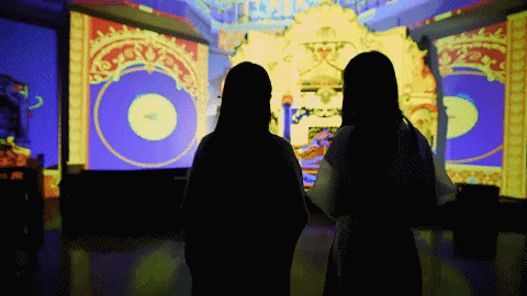 當(dāng)游客走進(jìn)音樂幻想曲,伸手觸摸空間發(fā)出的光,會(huì)觸發(fā)音樂的同步互動(dòng),四周回蕩著溫柔的聲音。