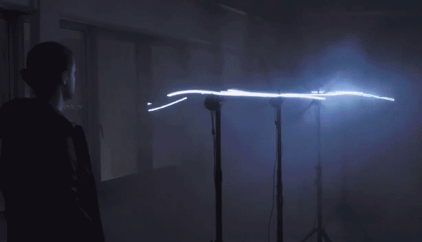 裝置兼具動(dòng)態(tài)延展性的全息炫屏陣列,屏幕可以形成任何所需形狀的各種長(zhǎng)度的線。