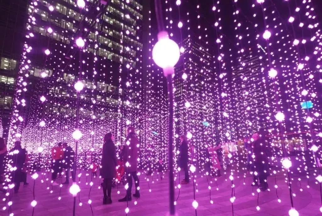 夢幻迷離的燈光矩陣,總會讓人置身流動閃爍的夢境。走進(jìn)燈光互動裝置,感受光影藝術(shù)帶給城市的另一種魅力。