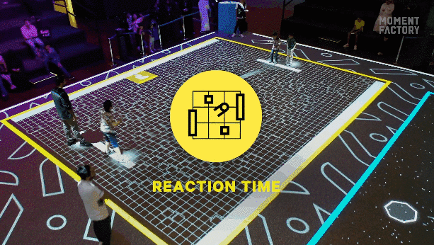 Moment Factory團隊的《PLAY² 》,游戲變成了“體育競技場”。2019Tanween專題討論會上,創(chuàng)新型的現場游戲PLAY²誕生,這是一個多媒體互動游戲,可以在大屏幕上實時記錄玩家運動分數,將游戲從屏幕上帶到現實世界。