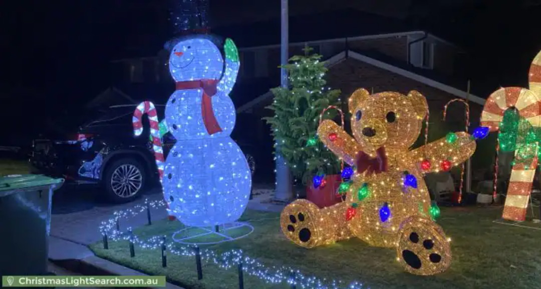 巨大的泰迪熊、考拉、圣誕樹是這處彩燈的特色,此外也包括雪人、姜餅人、糖果等元素。這處彩燈已有15年歷史,主人說點亮彩燈的原因是喜歡看到孩子們的笑容。