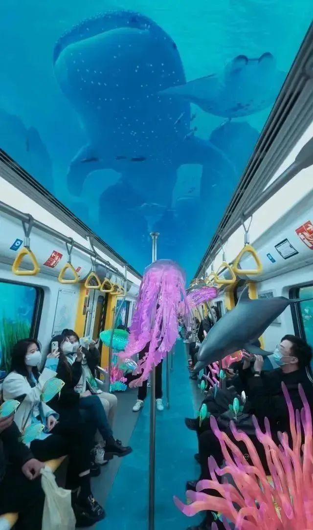 從隔海到輪渡,從輪渡到隧道,從隧道到地鐵,6分鐘的“青黃相接”,是時間的縮短,也是時代的變遷,更是青島快速發(fā)展的最好體現(xiàn)。視頻中,一帆“龍舟”駛?cè)牒5姿淼?,將奇幻的海底世界具象化,仿佛真龍入海,巨鯨、游魚、水母、海龜、海豚等生物來到人們身邊,在科技的加持下,這段鏈接青島與黃島的旅程被打造成真正的海底探秘。