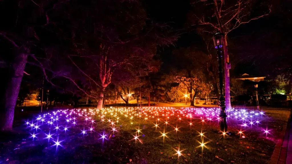 本迪戈是該州最適合天文愛好者的景點之一。夜晚,游客們在此能夠徹底放松,盡情享受這片寧靜的澳大利亞南部天空,透過羅莎琳德公園樹梢的閃耀景象觀賞星空。這次的藝術裝置同樣也安排了類似星空的燈光秀。