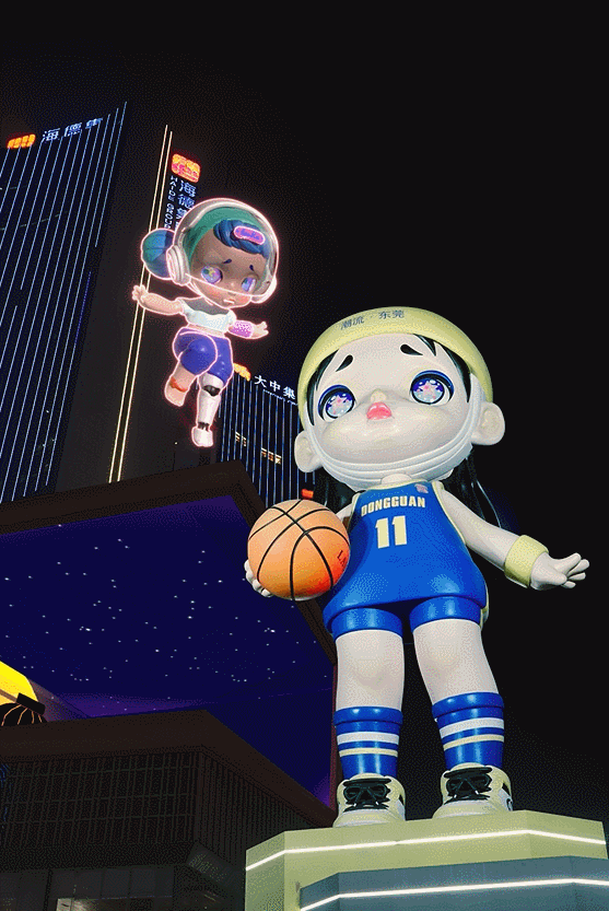 籃球勞拉迸發(fā)巨大能量,將東莞點綴為賽博朋克風格。