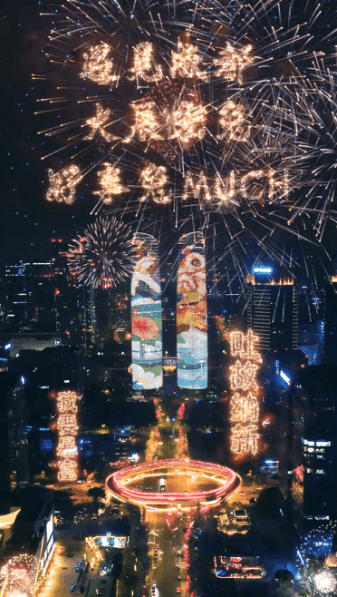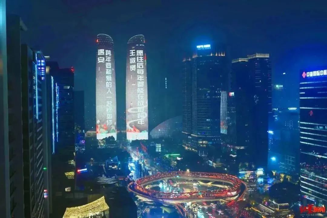 在絢麗的燈光中,一則則新年愿望在天府雙塔次第顯現(xiàn),這場218米高空“云端跨年”盛宴,點亮了成都美麗的夜空成為跨年夜里最璀璨的燈火。