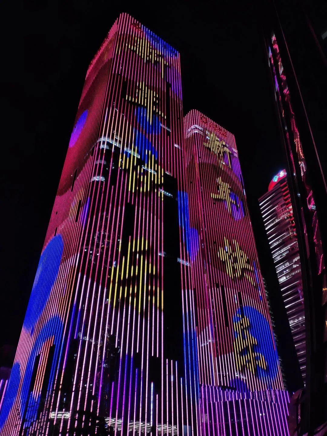鵬城夜幕降臨,一場“東風夜放花千樹”的視覺盛宴將寶安中心區(qū)的現(xiàn)代建筑藝術品和大型城市綜合體,呈現(xiàn)在市民面前。