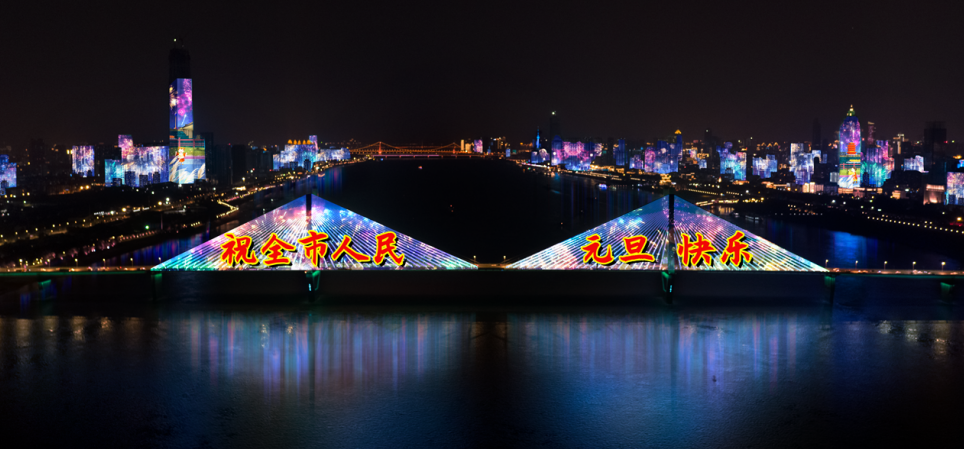 武漢長江燈光秀特推出2023年元旦特輯,時間:2023年1月1日至2023年1月2日,每晚18:30至22:00期間滾動播出。