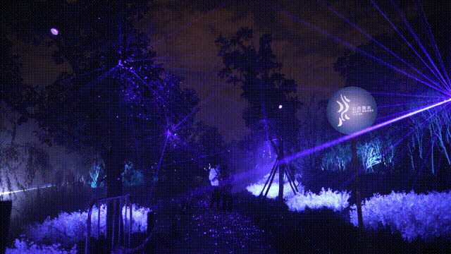 項(xiàng)目包含“幻月漪水”“華林若木”“幽眸噬火”“隱寺溯金”“玉蘭耀土”五大主題場(chǎng)景,分別象征“水、木、火、金、土”五大原生能量元素,同時(shí)融入了玉蘭花、滾燈、“賢文化”等本土文化元素,將夜幕籠罩下的森林公園化身為“旭林秘境”,讓游客在太陽(yáng)守護(hù)使者“芒”的引領(lǐng)之下,開(kāi)啟一場(chǎng)驚心動(dòng)魄的尋光奇旅。