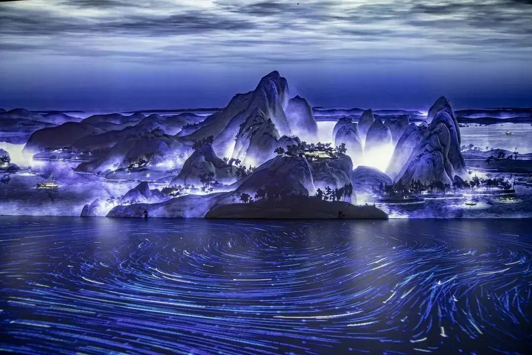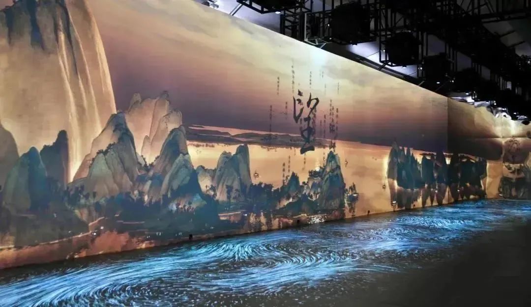 在國家“十四五規(guī)劃”和大力發(fā)展數(shù)字文旅、智慧文旅的時(shí)代背景,以故宮博物院典藏國寶文物《千里江山圖》為藍(lán)本,將國寶與科技充分融合,帶來一場全新的高科技沉浸式智慧文旅體驗(yàn)。展覽主題源自北宋國寶級長卷《千里江山圖》,畫作以絢麗的色彩、宏大的視角與工細(xì)的筆致描繪了錦繡山河的氣象萬千、壯麗恢弘,呈現(xiàn)了中國文人理想世界的縮影,被后世視為宋代青綠山水畫中的巨制杰構(gòu)。展覽由“展覽序廳”、“文化長廊”、“畫境萬千”、“盛世長卷”、“丹青劇場”、“繪境空間”、“宋潮有禮”、“藝術(shù)療愈”等8大單元構(gòu)成,包含感官體驗(yàn)、沉浸交互、藝術(shù)裝置、 空間造景等不同形式的各類展項(xiàng)16個(gè),可拍照打卡與游賞體驗(yàn)。
