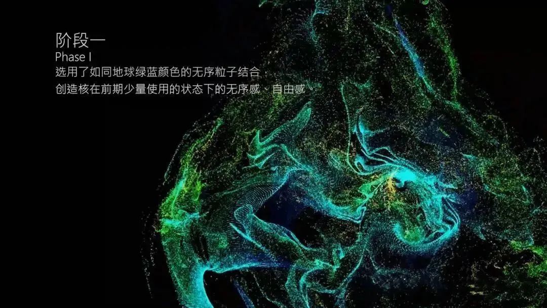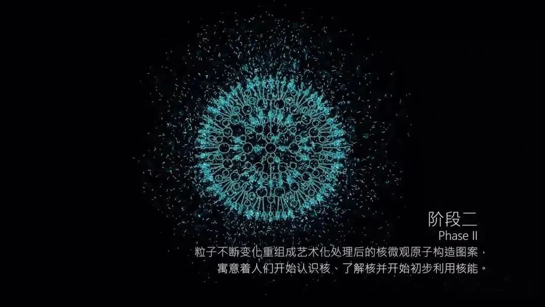 來自廣州美術(shù)學(xué)院的創(chuàng)作團(tuán)隊(duì)創(chuàng)作了互動投影“核花”,靈感來自鈾原子外的電子排列。