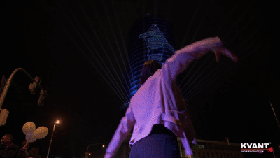 通過電鋼琴及其音調(diào),控制建筑物上燈光的運(yùn)動,并通過捕捉我們的舞步,觀眾有機(jī)會自己互動,他們的舞蹈動作投射在建筑物的表面上,而其中交互式激光投影部分由KVANT制作。