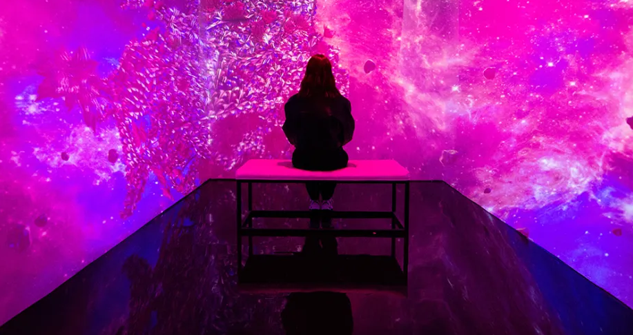 長達(dá)一小時(shí)的體驗(yàn)從 Immersion Gallery 開始,以一段 22 分鐘的電影通過強(qiáng)大音頻系統(tǒng)的全景投影探索 Viva Magenta(非凡洋紅) 的性格和深度。面對充滿活力的洋紅色,參觀者陶醉于純粹的喜悅中,感受到一種令人振奮的、無邊界的色調(diào),以及PANTONE 18-1750 Viva Magenta 歡迎任何對生活充滿熱情和叛逆精神的人。