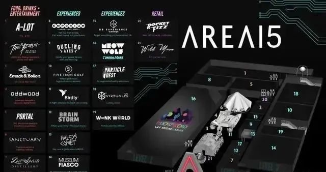 文旅商業(yè)項(xiàng)目Area15位于旅游城市拉斯維加斯,項(xiàng)目以科幻為主題,“Does Not Exist”為概念定位,面向全齡段的游戲玩家和科幻愛好者。