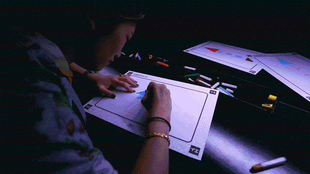 小朋友們化身為城市設(shè)計師,在各種汽車、UFO的圖紙上,填上自己喜歡的顏色,機(jī)器掃描一下,圖畫就會變成動畫出現(xiàn)在屏幕上啦!