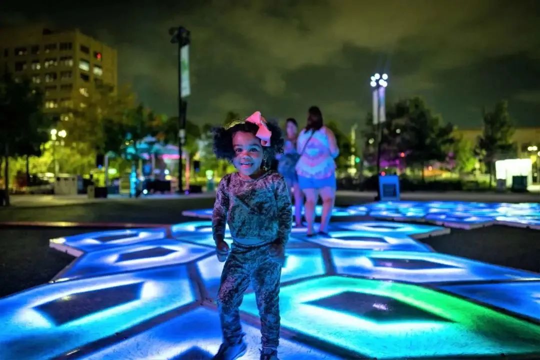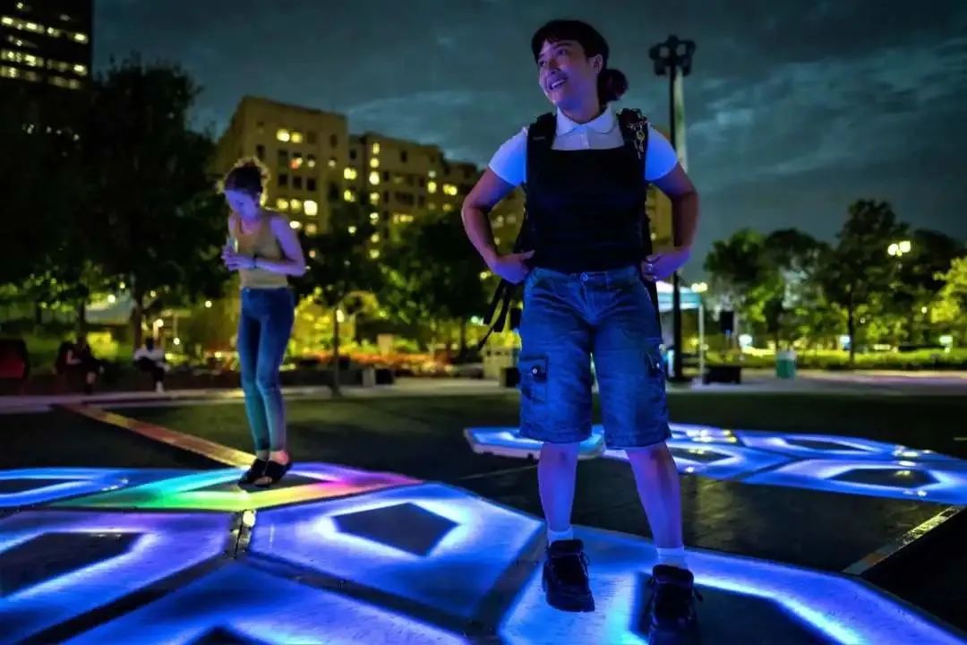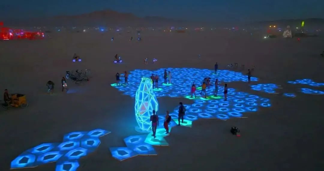 《最后的海洋》發(fā)光裝置是美國當(dāng)代藝術(shù)家Jen Lewin的最新的公共、臨時(shí)旅行互動(dòng)作品。這位藝術(shù)家利用她內(nèi)部開發(fā)的創(chuàng)新網(wǎng)狀網(wǎng)絡(luò)LED技術(shù),創(chuàng)造了一個(gè)由300個(gè)交互式五角形瓷磚組成的發(fā)光海洋/池塘,每個(gè)瓷磚均由回收的海洋塑料制成。這項(xiàng)工作不僅旨在啟發(fā)和教育,同時(shí),它通過使用回收的海洋塑料來影響我們的海洋和地球的恢復(fù)。