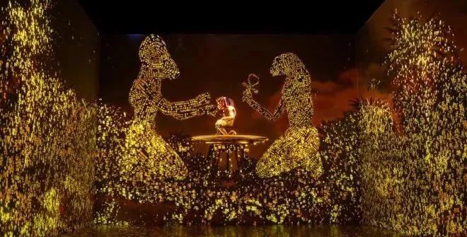 展覽通過1,200 平方米的投影和非凡的配樂,將您帶到古埃及去追溯著名法老的一生。