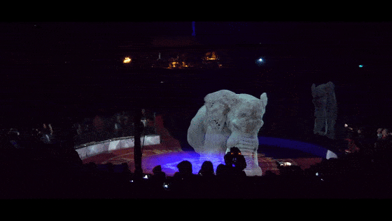 全息馬戲團(tuán)表演使用11臺投影儀,遠(yuǎn)距離激光和鏡頭來策略性地規(guī)劃馬戲團(tuán)的表演。為了實現(xiàn)全息圖的完美渲染和照明,在設(shè)置中使用了高對比度投影儀。節(jié)目中有小丑和空中飛人,伴隨著美妙的全息影像,被認(rèn)為是世界上最大的燈光秀之一。