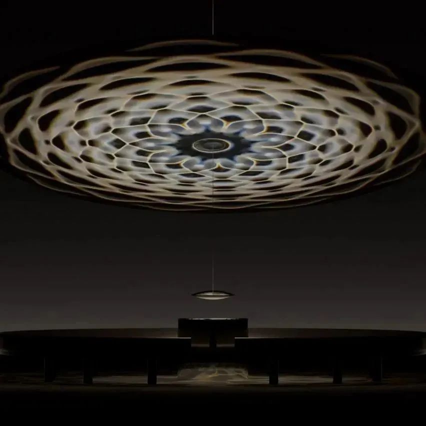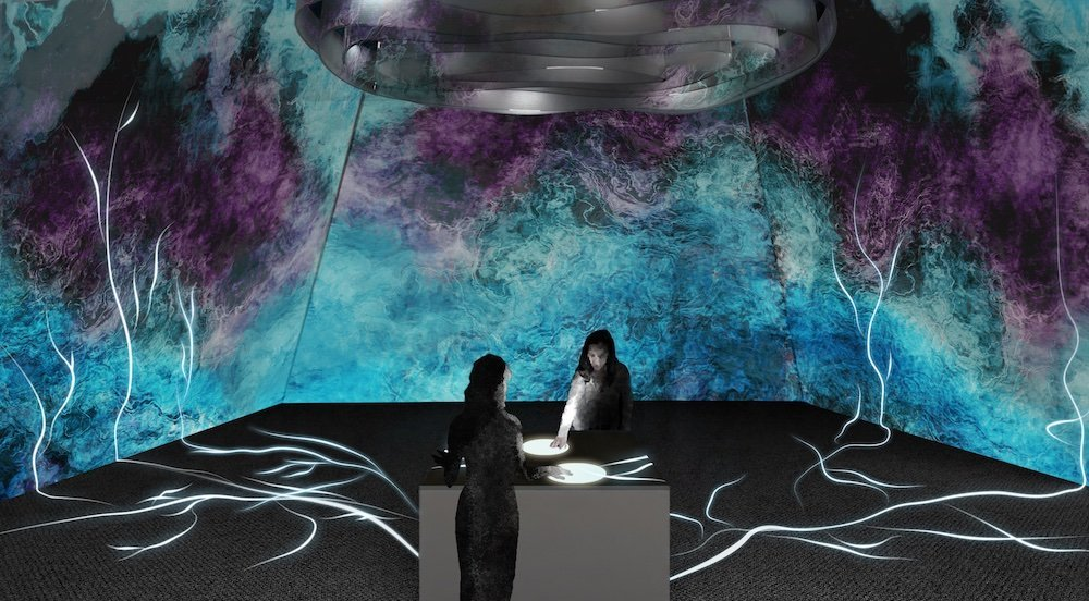 Google與設(shè)計(jì)團(tuán)隊(duì)藝術(shù)家Lachlan Turczan合作共同創(chuàng)作了Shaped by Water,這是一個探索水作為設(shè)計(jì)靈感來源的展覽。一系列裝置將水與光和聲音混合在一起。鏡面雕塑中的水池隨著附近游客的移動而蕩漾開來。抬頭凝視天花板,仿佛置身于天文館,欣賞由液體舞蹈和旋轉(zhuǎn)中的音樂振動所產(chǎn)生的波浪光圖案的反射。