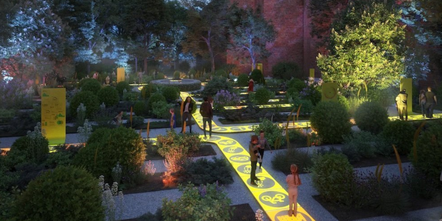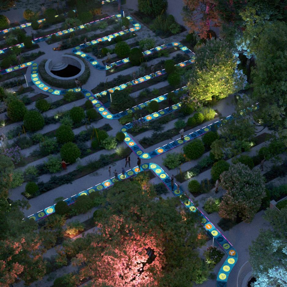 由意大利建筑師 Italo Rota 和 Carlo Ratti 共同設(shè)計(jì)的,位于布雷拉植物園內(nèi)的裝置作品《Walk the Talk – Moving Energy》旨在將公園變成“現(xiàn)場游戲”,呼應(yīng)了“未來實(shí)驗(yàn)室”這一主題。該路徑由產(chǎn)生聲音和光線的數(shù)百塊瓷磚制成。道路會隨著時間、光線和聲音發(fā)生改變,探討了移動性的發(fā)展。