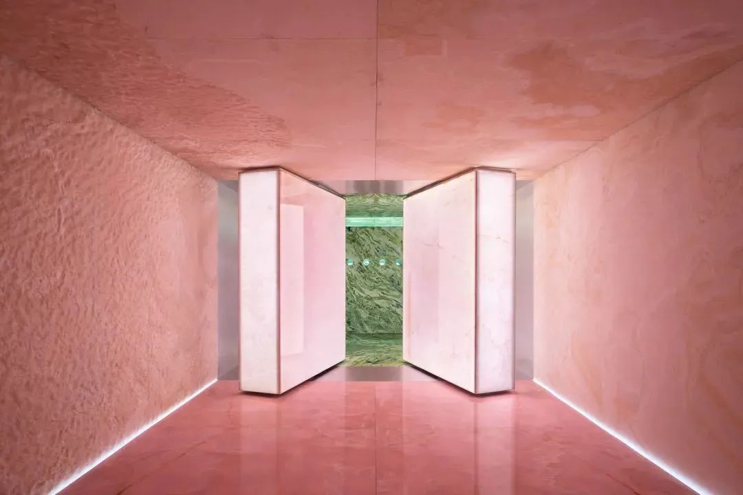 這是SolidNature第二次參加米蘭設(shè)計(jì)周,本次他們委托OMA設(shè)計(jì)了一個藝術(shù)裝置《Beyond the Surface》,被稱為“沉浸式夢境”,旨在探索天然石材從地質(zhì)礦石階段到最終成品的整個過程。
