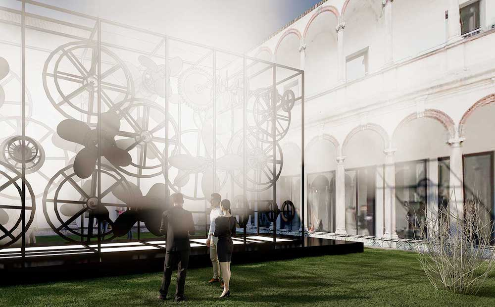 Piero Lissoni在Interni Magazine舉辦的Design Re-Evolution活動中為Università Statale 的San Lorenzo 造船廠展示了一個大型裝置,名為La Macchina Impossibile。展館講述了游艇推進(jìn)的未來。金屬雕塑融合了高科技與熟練的手工勞動。它由一個超大型機(jī)構(gòu)組成,該機(jī)構(gòu)由造船廠正在開發(fā)的綠色甲醇制氫新技術(shù)提供動力,用于在其船只上發(fā)電。