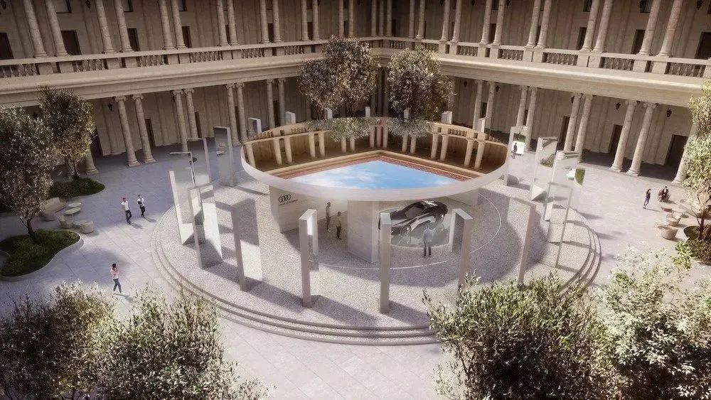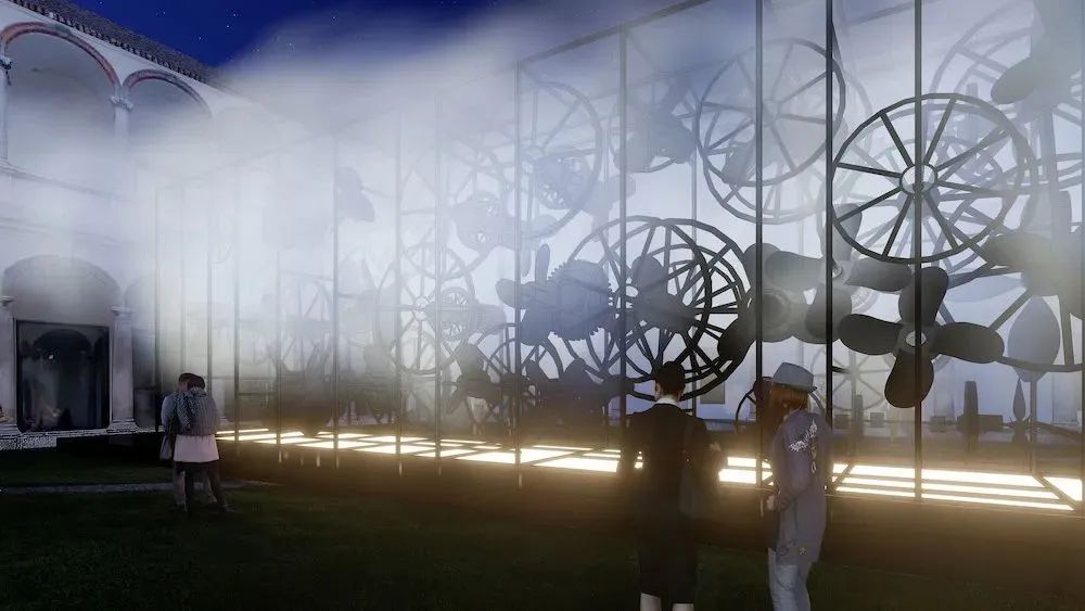 2023 年米蘭設(shè)計(jì)周期間,馬巖松 MAD 的裝置作品“動量”在米蘭大學(xué) Cortile d’Onore 的中央庭院展出。