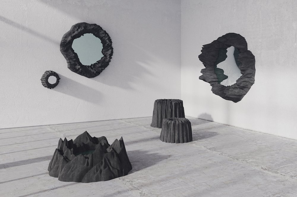 黎巴嫩建筑師兼設(shè)計(jì)師Richard Yasmine展示了一個沉浸式裝置,通過詩意的功能對象、虛擬現(xiàn)實(shí)和NFT向大自然致敬。3D打印的有機(jī)形狀鏡子、桌子和壁掛燈重現(xiàn)了星際風(fēng)光或天體布景,沉浸式3D VR體驗(yàn)將觀眾從戲劇性的行星景觀帶入另一個神秘的行星景觀。通過DeepSoundMe的先進(jìn)技術(shù),Jasmine利用人工智能創(chuàng)建了第一個從與藝術(shù)體驗(yàn)相關(guān)的生物識別數(shù)據(jù)生成的NFT集合。