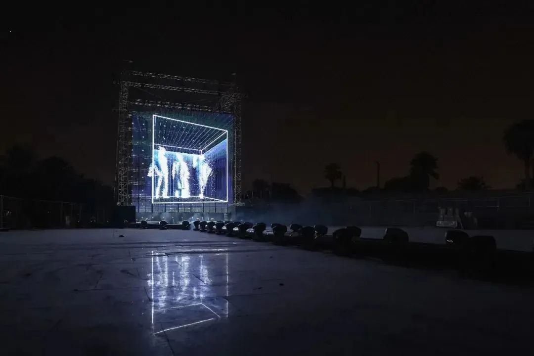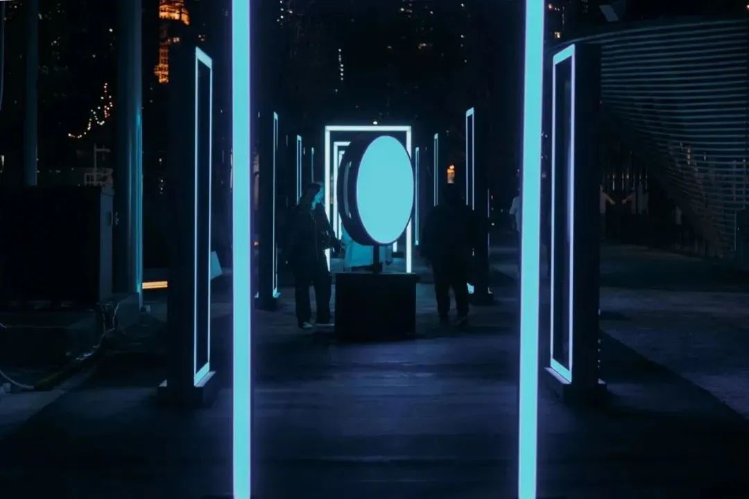 這個發(fā)光裝置長 45 米,寬 20 米,高 10 米,包含 65 個電動鏡面、90 束移動的光和多聲道音響系統(tǒng)的完美同步相互作用——將創(chuàng)意的可能性提升到一個全新的水平。