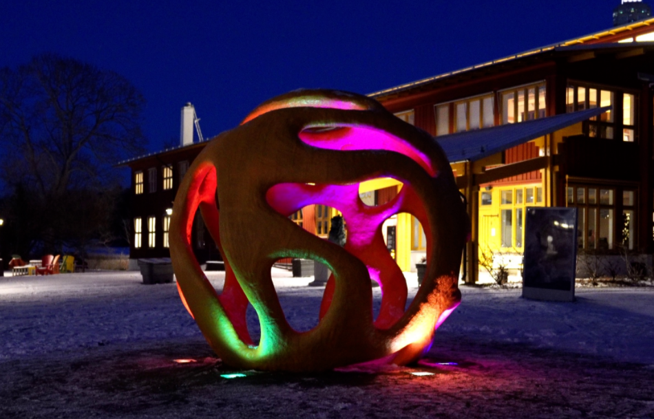 這個雕塑是互動的,讓孩子們在一個由視聽表演構(gòu)建的環(huán)境中玩耍,這些視聽表演的靈感來自大自然的所有五個元素。