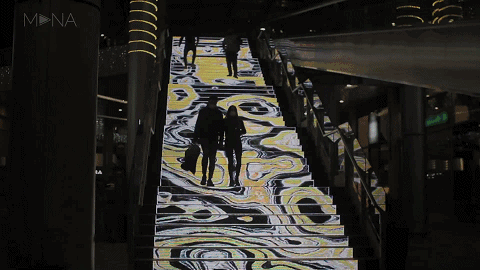西班牙藝術(shù)家 Richard Santana 創(chuàng)作的多媒體樓體作品,觀(guān)眾走在上面,仿佛踏上一條未知的光影世界。