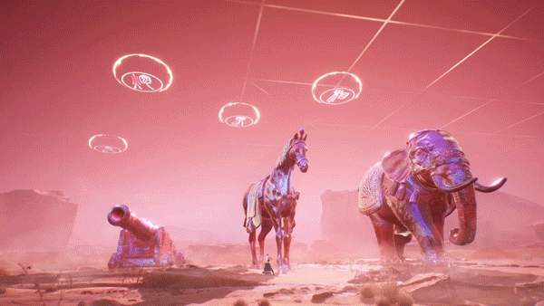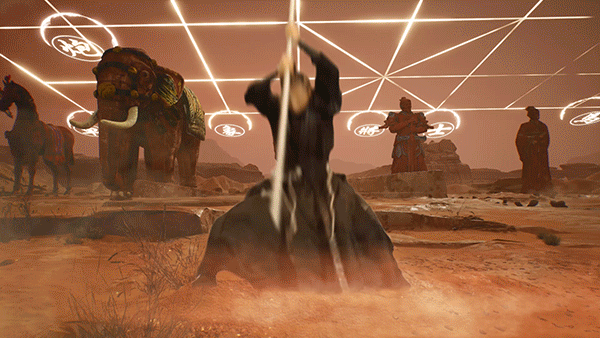過捕捉動捕識別點,可最大化模擬人物的運動軌跡,實現(xiàn)虛擬內(nèi)容和實拍內(nèi)容之間的交互,讓巨型雕塑士兵形象與虛擬場景相融。