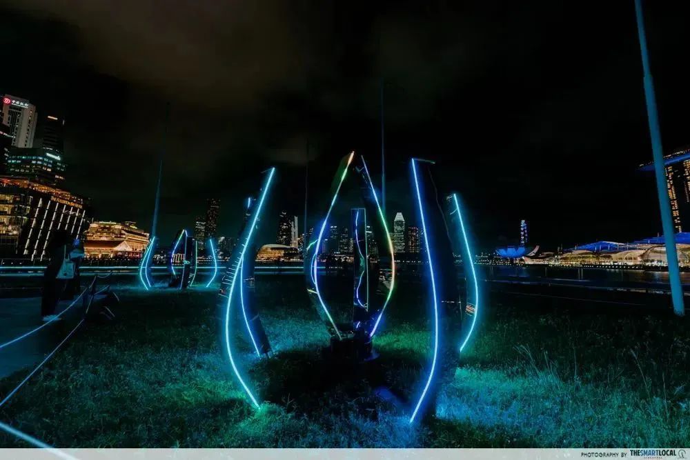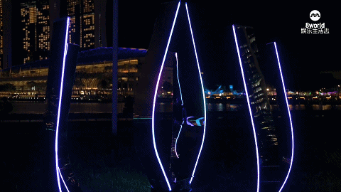 在夜晚,由于光線沿著雕塑的旋轉(zhuǎn)中心凹凸結(jié)構(gòu)播放,會出現(xiàn)線性光束。
