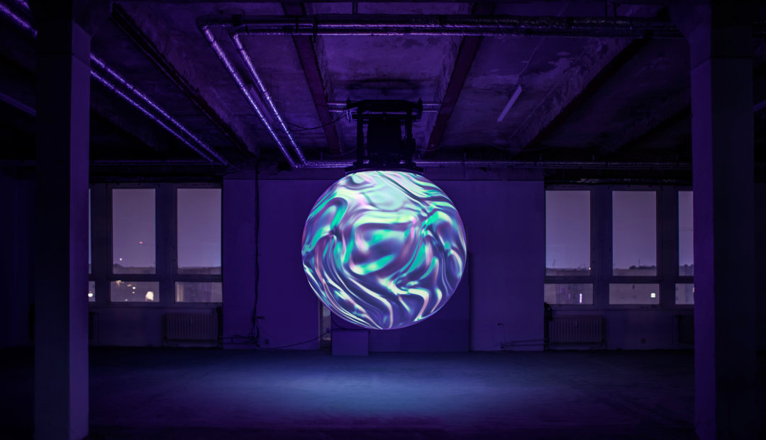 《ANIMA》是一個(gè)被賦予了情感的智能化巨大球型實(shí)體。當(dāng)人靠近它時(shí),能通過(guò)它球體表面仿真數(shù)據(jù)的具象化流動(dòng),感受到它的“情緒”變化。它還能辨別人的肢體動(dòng)作,并用球體表面色彩的流動(dòng)和現(xiàn)場(chǎng)聲效的變化作為反饋。