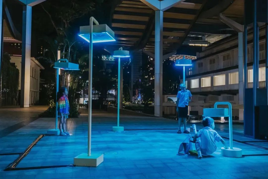 街區(qū)派對互動裝置,是新加坡Plug & Play 制作團隊中的Jeremy Lin, Jedy Chen, Dexter Hong 制作的燈光裝飾。創(chuàng)作者希望通過輕松愉快的互動呼吁大家為環(huán)境和可持續(xù)的未來承擔(dān)責(zé)任。